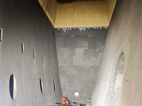 榮盛耐材施工人員正在施工 四川4x90循環(huán)流化床鍋爐內(nèi)襯維修現(xiàn)場 鍋爐內(nèi)襯不定形耐火材料施工效果 四川4x90循環(huán)流化床鍋爐···
