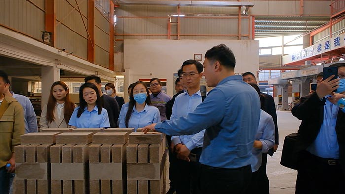 秦經理在講解耐火磚的生產工藝