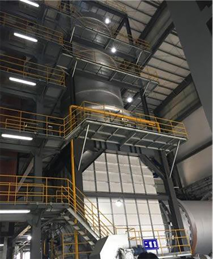 急冷塔使用耐酸澆注料或者耐酸膠泥,頂部往下約2米區域溫度較高可以采用25mm絕熱材料作為隔熱層,內襯總厚度100mm即可。